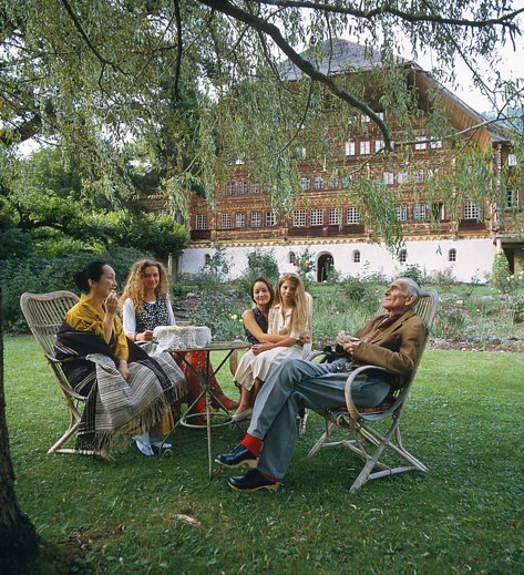 Balthus fabulaba sobre sus orígenes, inventándose un pasado aristocrático, atribuyó a su padre el condado de Rola y hacía bordar su escudo en la ropa de cama y sus kimonos. Afirmaba que su familia estaba emparentada con Lord Byron. Compró un hermoso castillo en la campiña francesa y varias mansiones en Suiza, donde se recluía para pintar. En 1977 se trasladaron al emblemático Grand Chalet en Rossinière (Alpes Suizos) donde continuó pintando hasta su muerte en 2001.