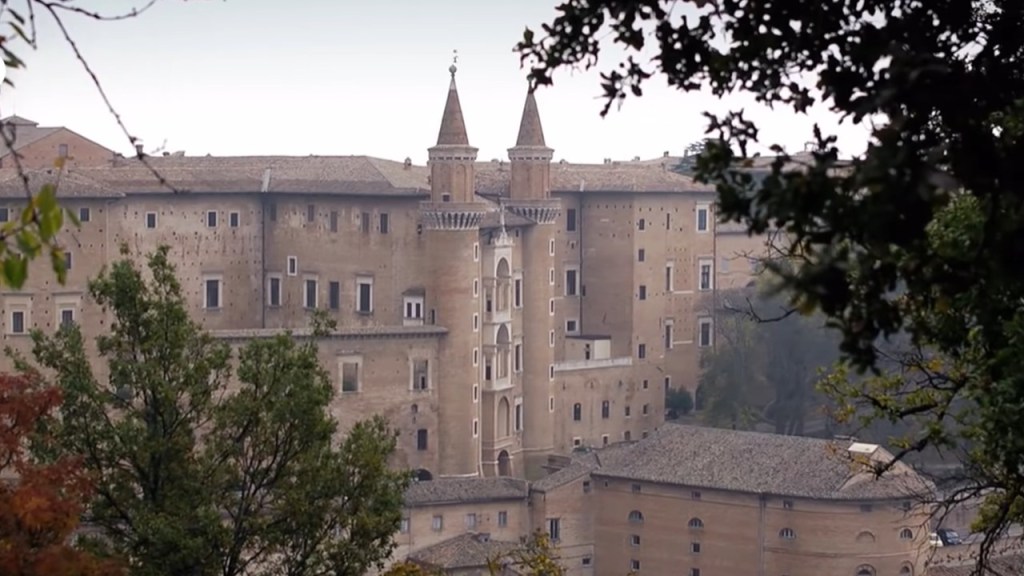 Giuliano su derrochador hermano, llegó por casualidad a Urbino, donde fue huésped en el palacio Ducale,