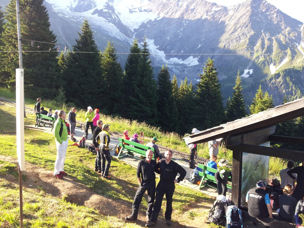 Nos levantamos relativamente temprano, sin madrugar demasiado, el día estaba pletórico, sabíamos que tendríamos buen tiempo durante todo el día. Por la hora, la única opción que teníamos era coger un autobús hasta Les Houches, donde tomaríamos el telecabina de Bellavue que nos dejaría en una estación del tren cremallera a 1.800 mts. de altitud.