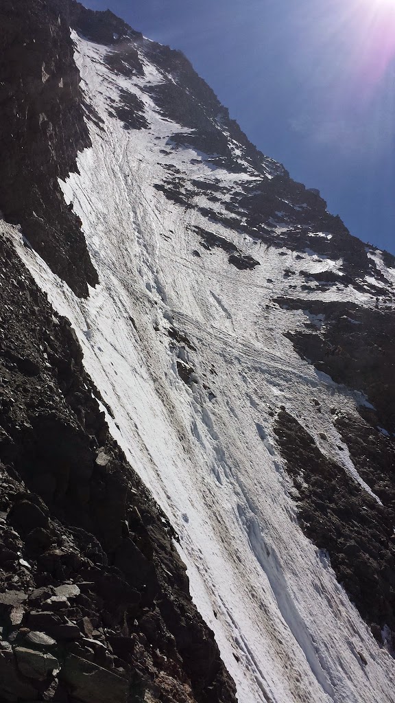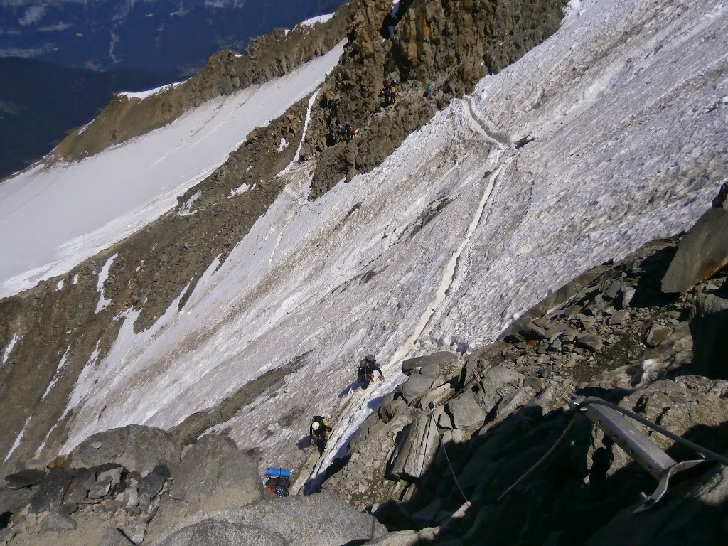 El primer tramo entre Nido de Águilas 2.300 m. y el refugio de Tete Rouse a 3167 m, no albergaba mucha complicación salvo los casi 900 metros de desnivel.