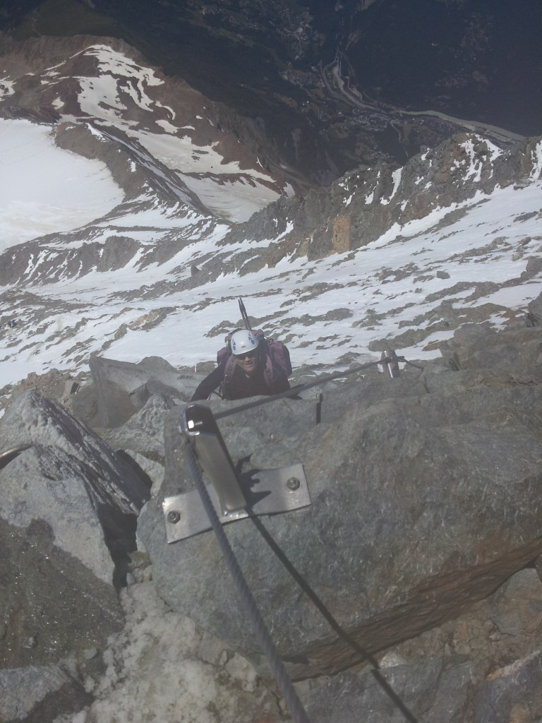 Los últimos tramos antes de llegar al refugio del Gouter, eran de mayor verticalidad pero estaban equipados, y aunque podría dar más “yuyu”, en realidad lo que te daba era una mayor tranquilidad porque era casi como una vía ferrata, al menos a mí me dio una mayor relajación.