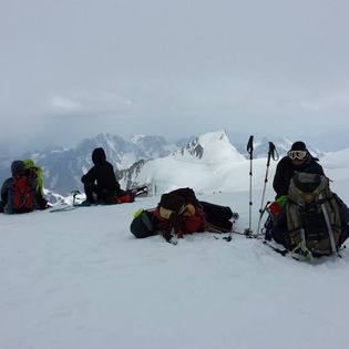 En cuanto llegamos vimos a Fran que se quedó bastante más tranquilo al vernos, nos paramos a comer algo, mientras uno de nosotros fue a preguntar por el tiempo y nos comentaron que la tormenta prevista se adelantaba, el mal tiempo empezaría a hacer acto de presencia ya, y lo malo es que las previsiones eran que no pararía en al menos 3 días, así que sin descansar prácticamente, recogimos nuestros bártulos y nos dispusimos a la marcha nuevamente, había que salir del corredor de Gouter y la bolera cuanto antes, era una zona peligrosa para andar con tormentas y más de bajada, fue ponernos a bajar el corredor de Gouter y ponerse a nevar, bajamos el corredor despacio pero lo bajamos bien,